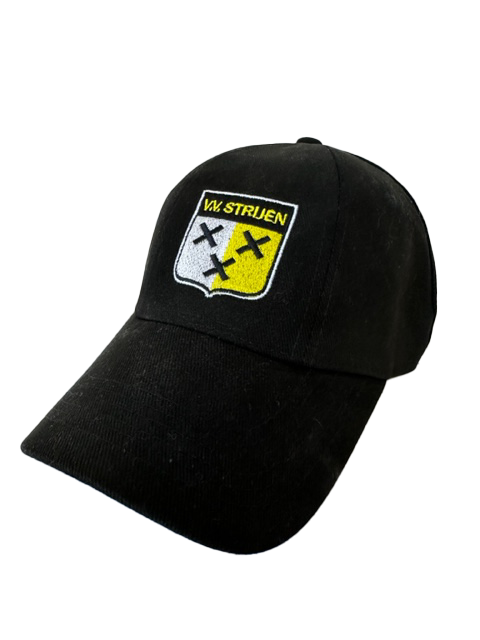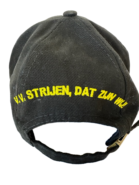 Voorzien van clublogo als geweven badge op voorzijde en op achterzijde tekst v.v. Strijen dat zijn wij!